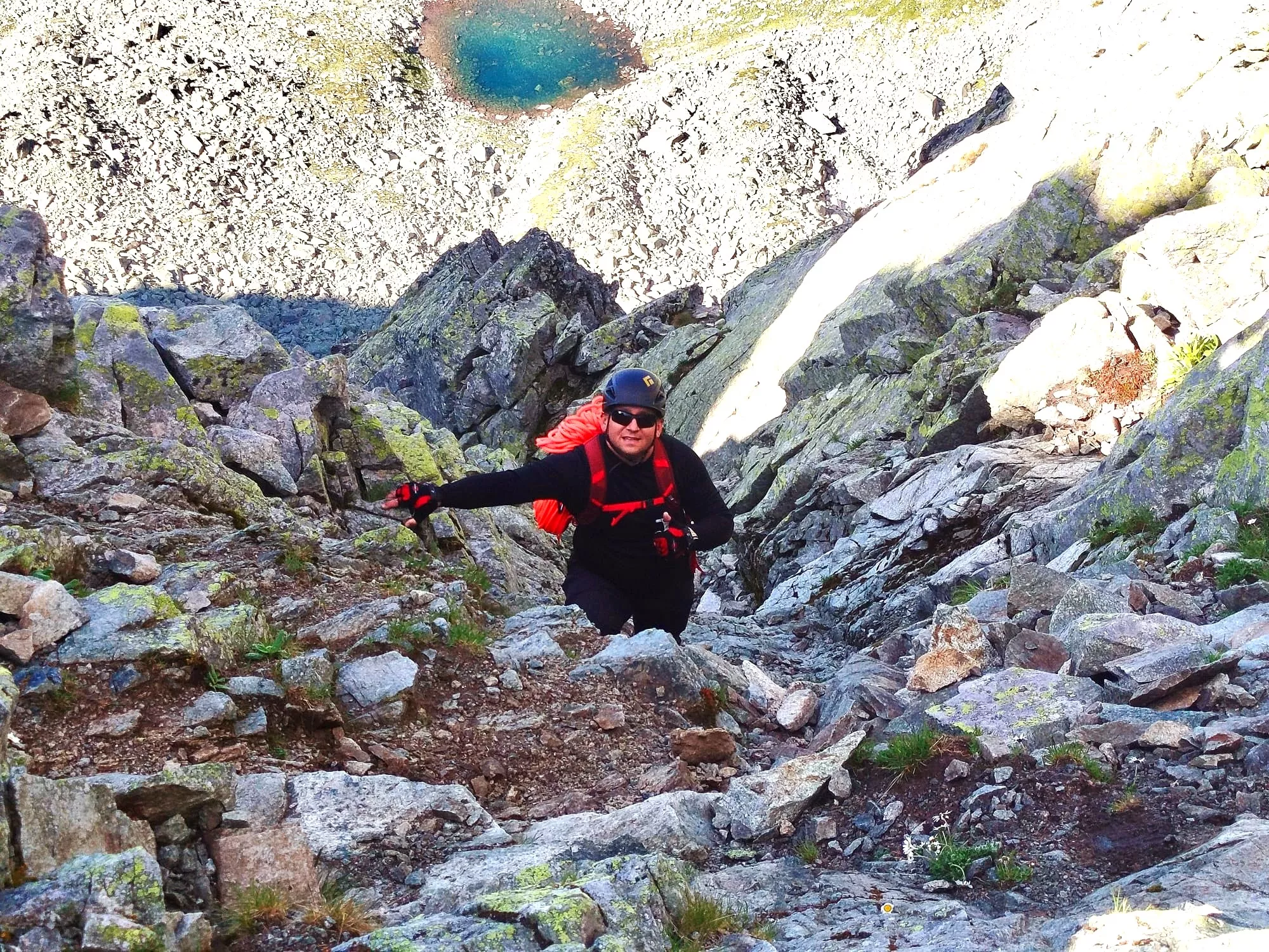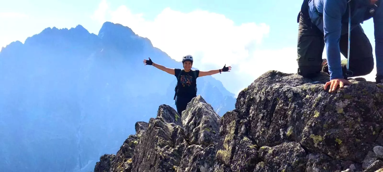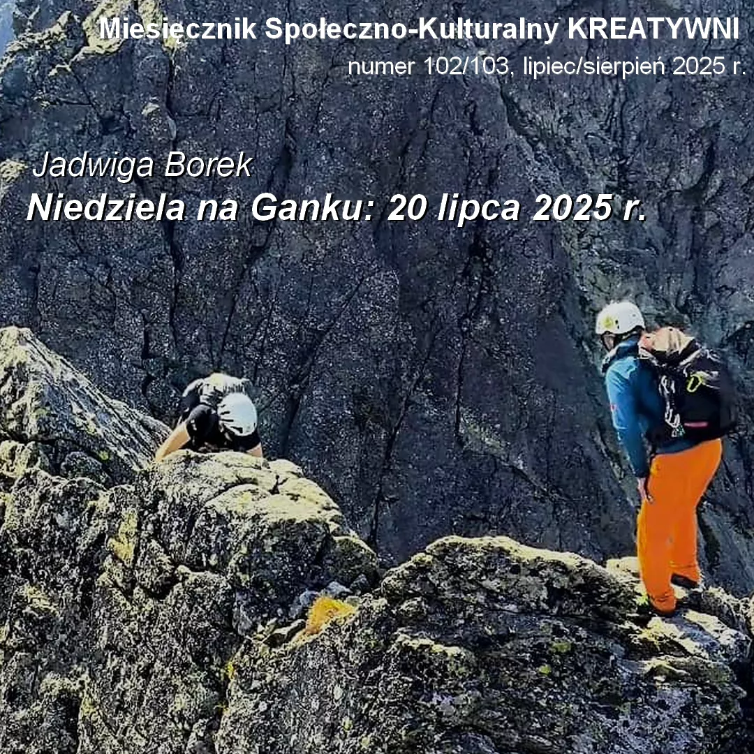 Niedziela na Ganku ... mój sen się ziścił, pięknie się wchodziło, na powrocie to przy tej lufiastej ścianie, delikatnie mówiąc byłam posrana, ale moja polisa na życie z asekuracja lotną i Marcin Roczek, pozwoliły na skupienie i techniczne zejście w dół, to było dla mnie wyzwanie, tak zdałam ten egzamin do bezpiecznego powrotu w doliny. Ganek okazał się szczytem dla ludzi o mocnej koncentracji w sytuacji lufiastej grani. Pani na grani przeszła i dotarła do szczytu, jestem z siebie dumna, że tego dokonałam, także Ganek jesteś mój, nie obiecuję ale może zrobię come back in Ganek, dla tych pięknych widoków i adrenaliny