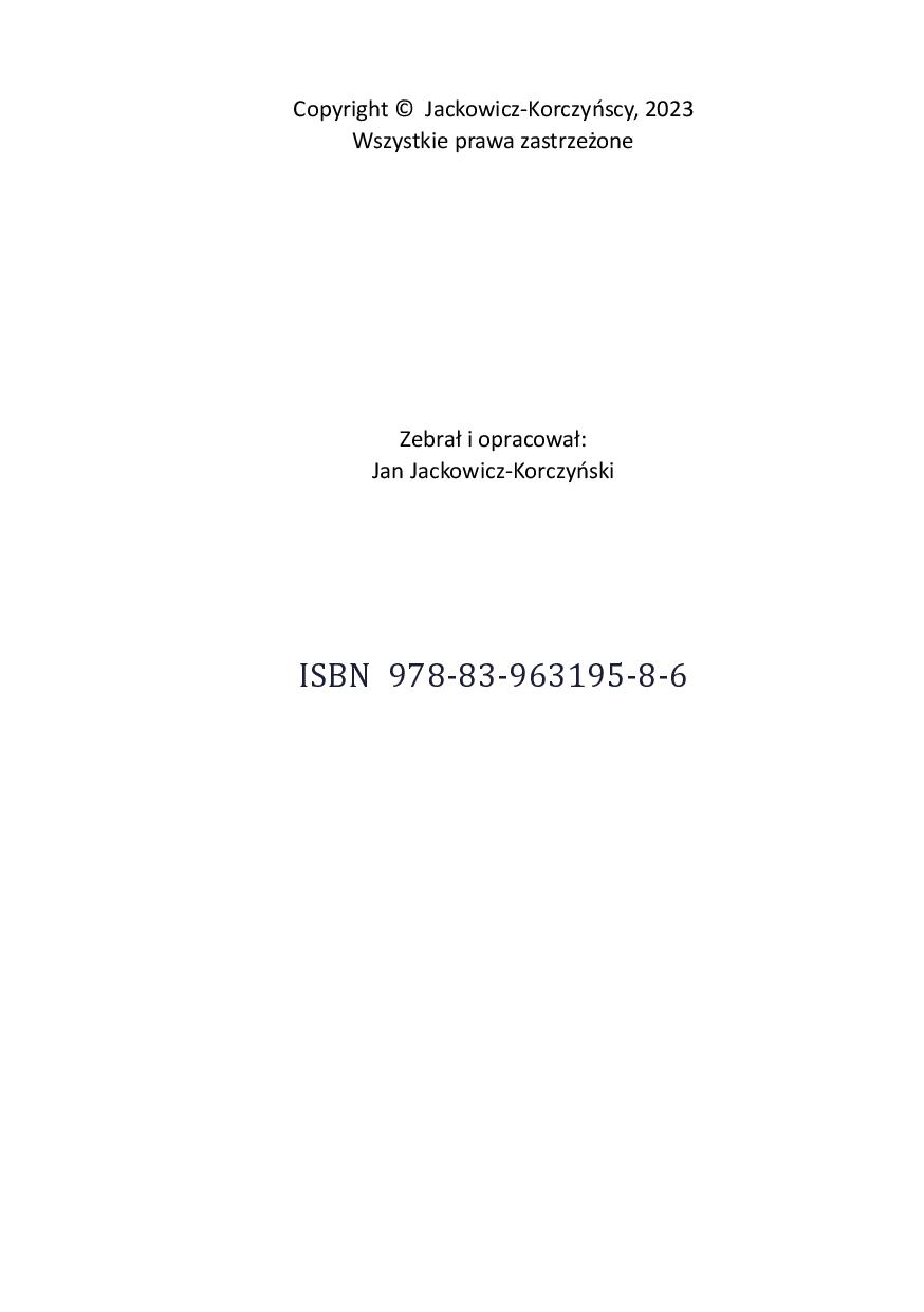 Obecny tomik wydajemy w formie ebooka oraz w wersji drukowanej w małym nakładzie dla użytku rodzinnego. Druk zaplanowaliśmy jako prezent-niespodziankę pod choinkę dla Joleńki (naszej żony, Mamy, strażniczki i Pani naszego domu rodzinnego, którego córki nazywają Korczynem Pomorskim…)