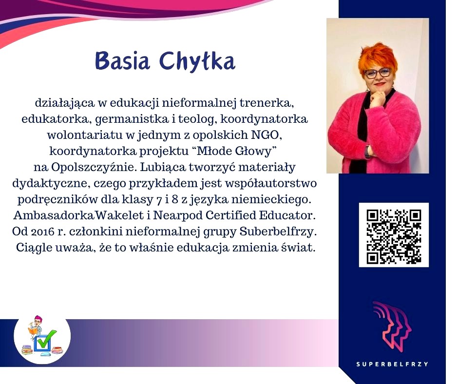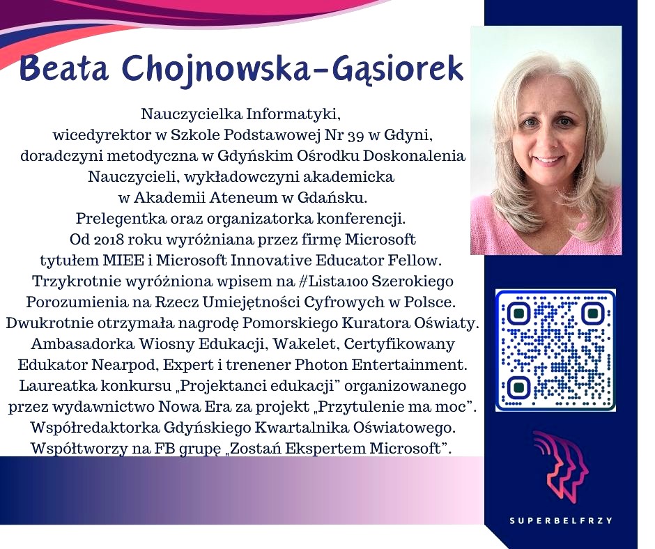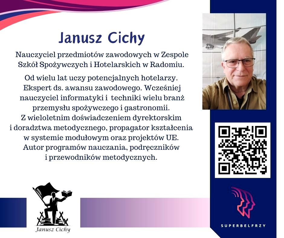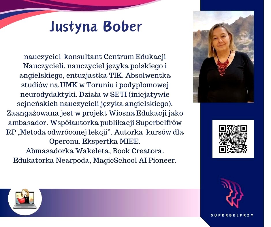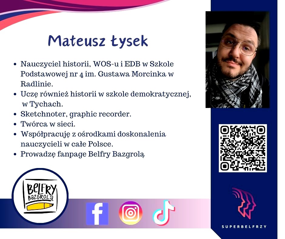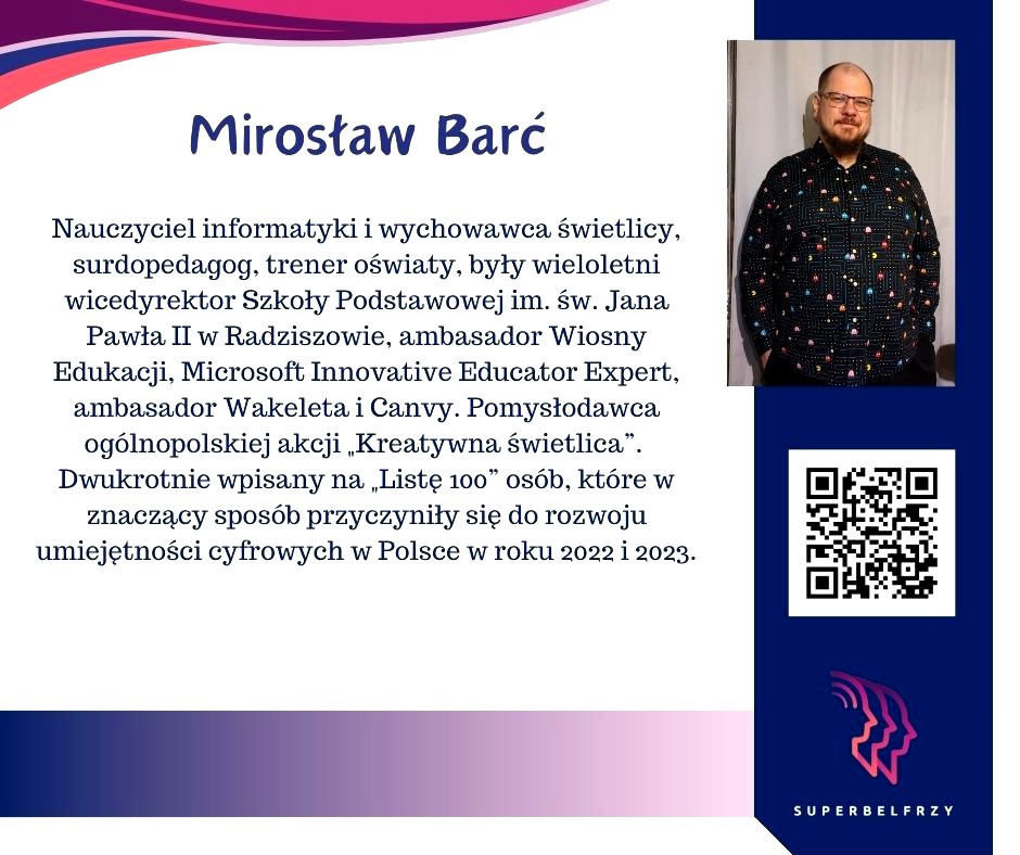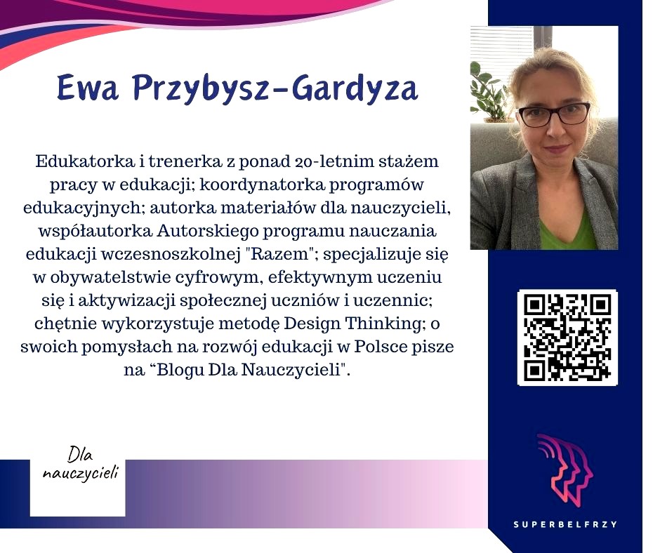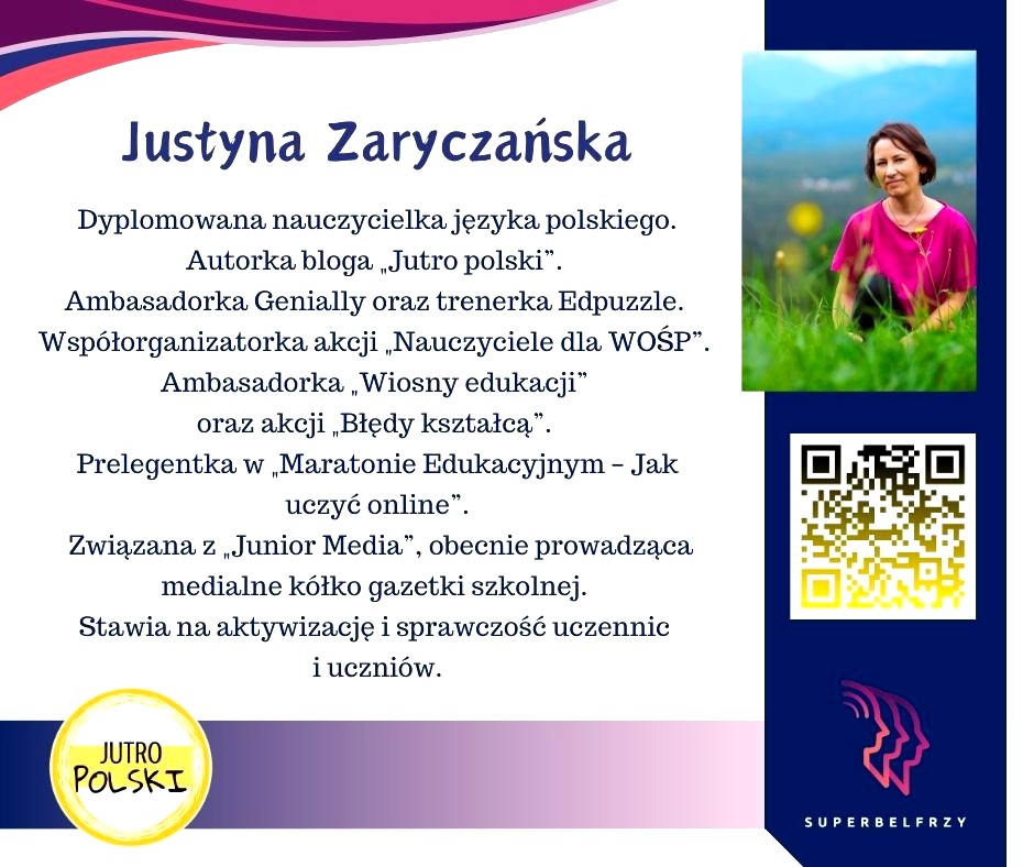 W tym roku w Canvie potworzyliśmy swoje wizytówki,, gdzie każdy przedstawiał się kim jest i co robi oraz umieścił kod QR, który odsyła do zasobów sieciowych nim związanych.