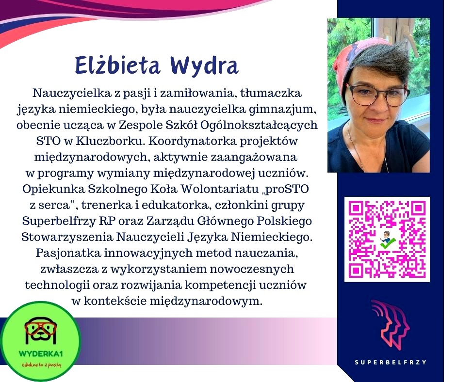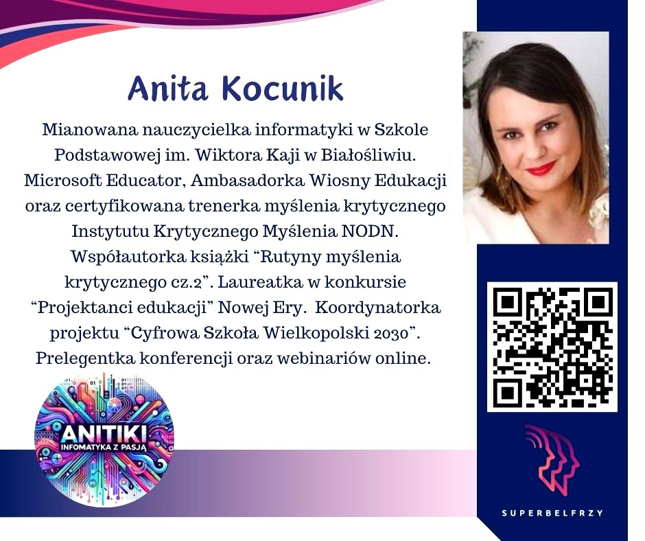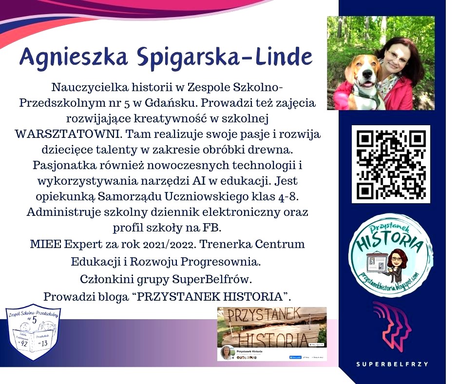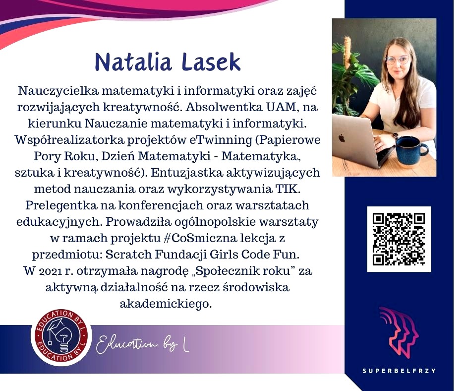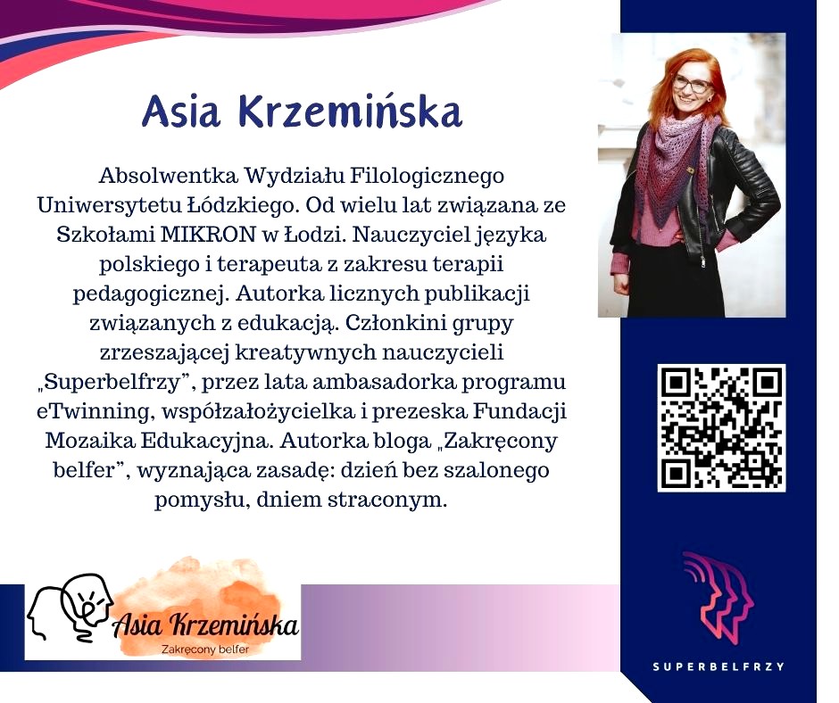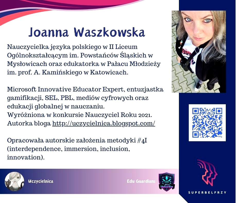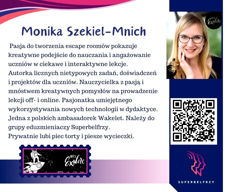 W tym roku w Canvie potworzyliśmy swoje wizytówki,, gdzie każdy przedstawiał się kim jest i co robi oraz umieścił kod QR, który odsyła do zasobów sieciowych nim związanych.