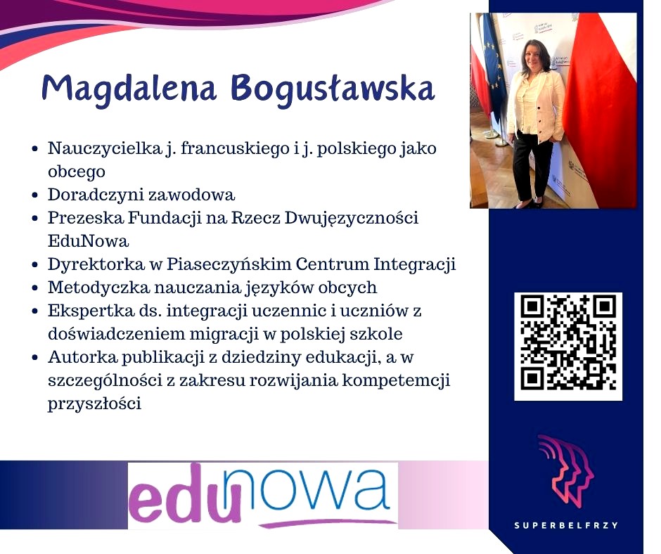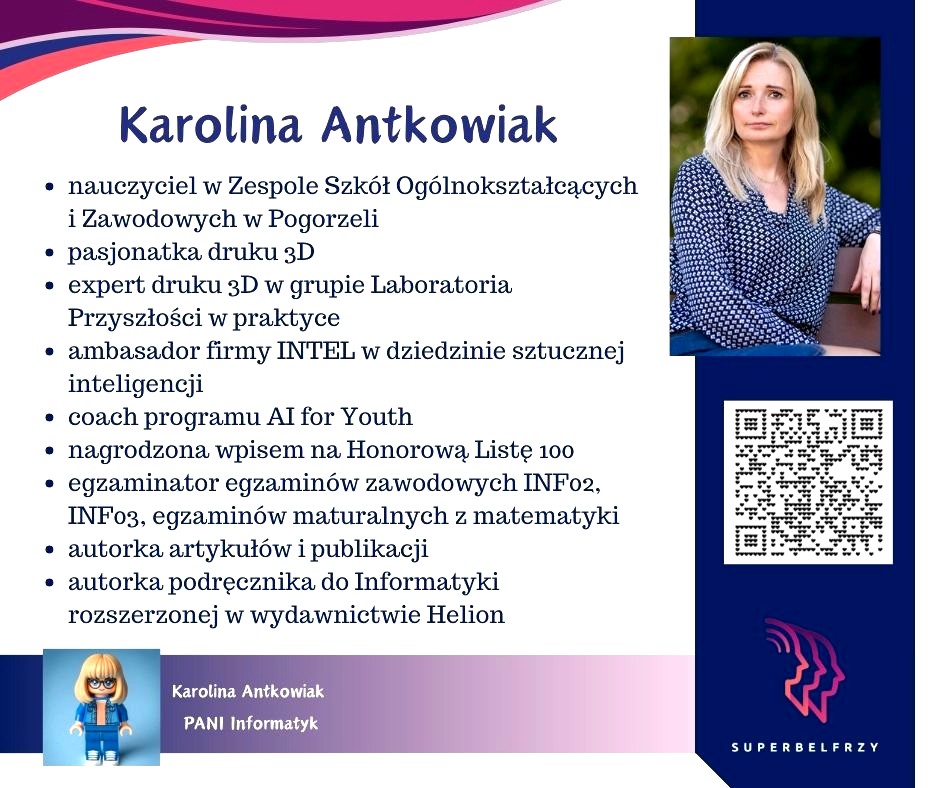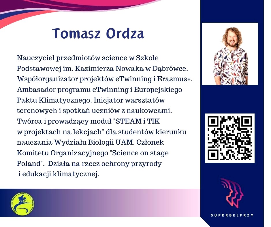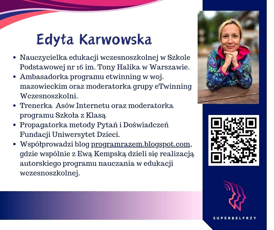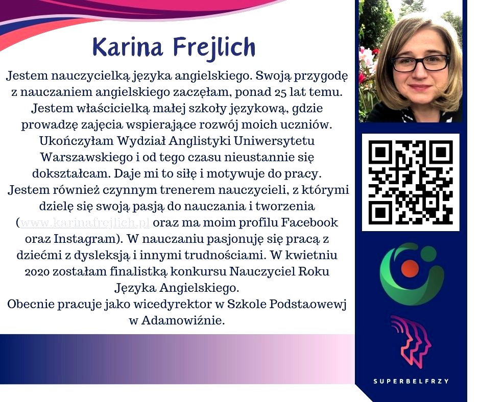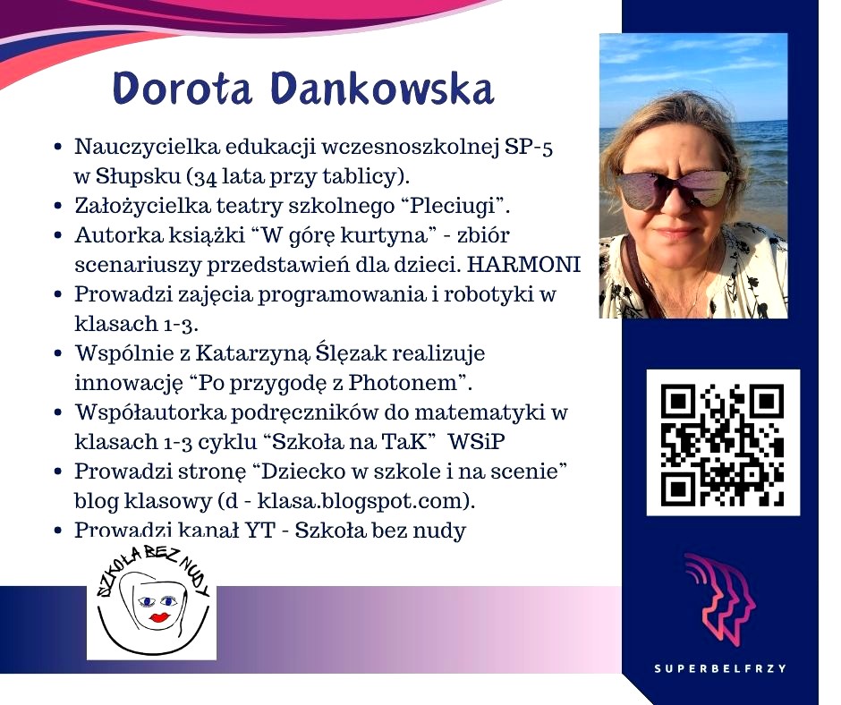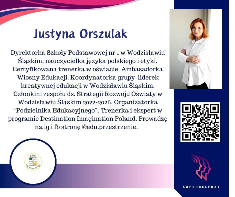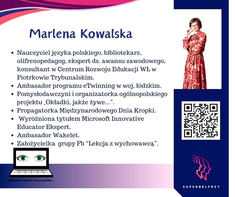 W tym roku w Canvie potworzyliśmy swoje wizytówki,, gdzie każdy przedstawiał się kim jest i co robi oraz umieścił kod QR, który odsyła do zasobów sieciowych nim związanych.