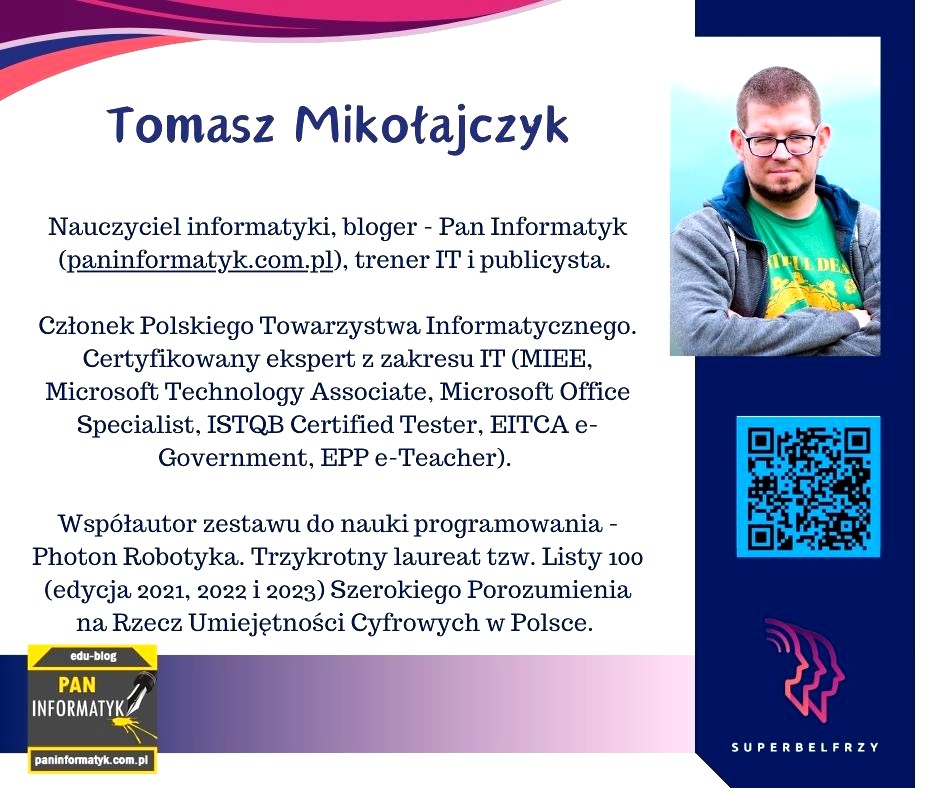 Od wielu lat w naszej nieformalnej innowacyjnej grupie nauczycieli SUPERBELFRZY RP EDUMIENIACZE ( https://superbelfrzy.edu.pl/ ) na to nasze święto przygotowujemy wspólnie jakiś prezentacyjny projekt.