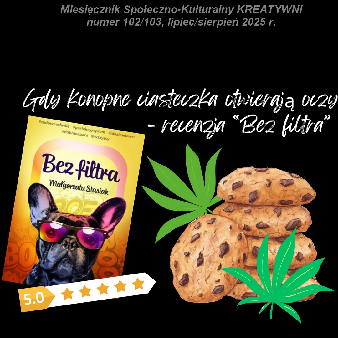 „Bez filtra” to powieść momentami zabawna, poważna, a czasem absurdalna. Innym razem zaskakująca, w szczególności momenty między Aldoną, a Jackiem. Myślę, że ich zbliżenia sprawiają, że dla przezorności polecę tę książkę osobom 18+. Nie oczekujcie jakiś szczegółowych opisów, są one subtelne i naturalnie wplecione w akcję książki za co autorce należy się duży plus, ale wolę o nich uświadomić. Książka jest naprawdę dobrze napisana. Można się przy niej pośmiać i rozluźnić, a jednocześnie uświadomić sobie parę kwestii związanych z perfekcjonizmem, czy szkodliwym wpływem social mediów. Nie bierzcie też tego jako krytykę Instagrama, bardziej książka ukazuje, że do takich rzeczy trzeba podchodzić z głową i rozsądkiem, oraz pamiętać co jest w życiu ważne.