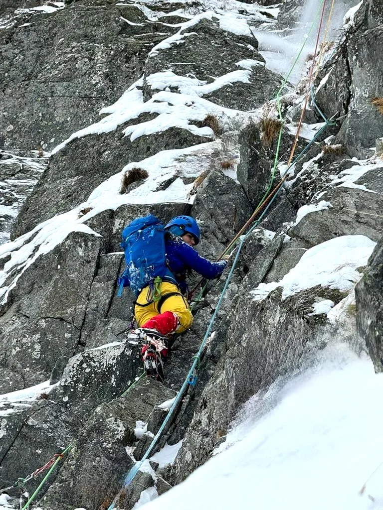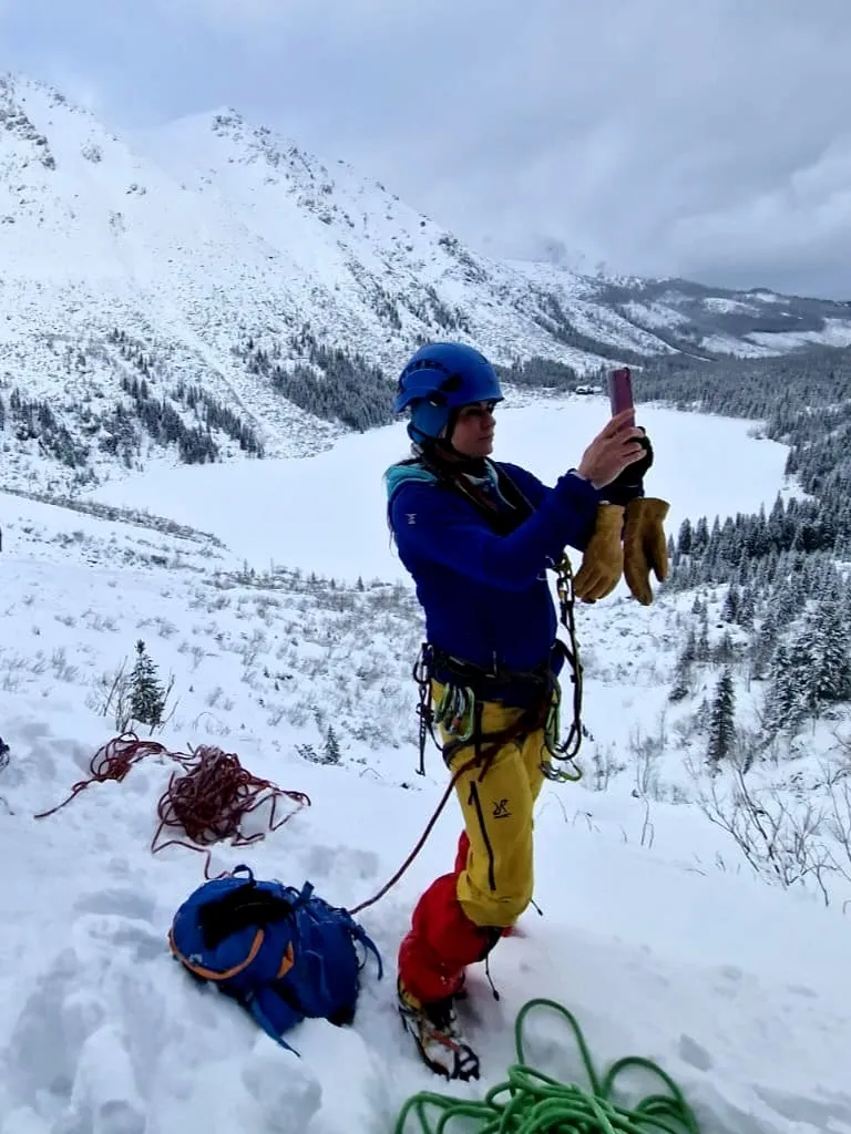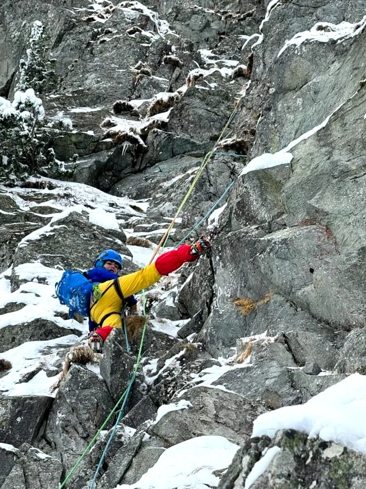W zimie trzeba w górach wykazać się pokorą. Niska temperatura, zmienność warunków. Wycena jest chyba bardziej orientacyjna niż w lecie . Warunki są różne. Raz szczeliny są zalane lodem innym razem schodzą pyłówki jak dzisiaj!!!... albo wieje wiatr czy też jest świeży śnieg . Samo podejście pod ścianę to już inne wyzwanie niż latem .